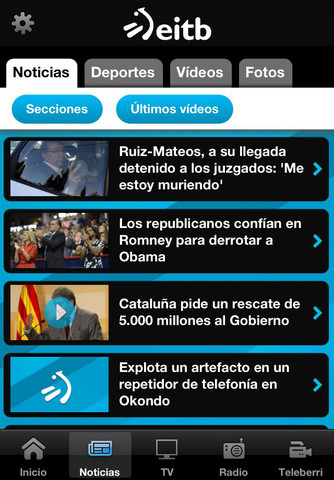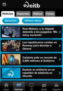La app de eitb.com ofrece versiones multimedia y multilingües (castellano, euskera, francés e inglés) para que puedas seguir la actualidad informativa, cultural y deportiva de Euskadi y el mundo. Está desarrollada por Lavinia Interactiva, y el trabajo de integración ha estado a cargo de los equipos de desarrollo y sistemas tanto del propio grupo EiTB como de la empresa vasca M4F.